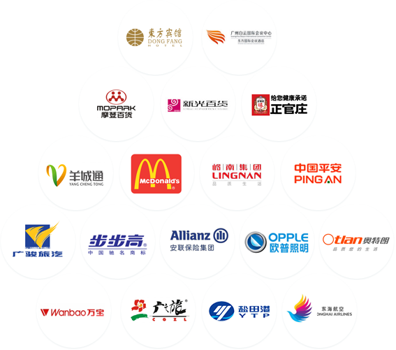 廣發銀行、廣州塔、志高空調、順德農商行、TCL集團股份有限公司、亞太森博紙業有限公司、廣州地鐵集團有限公司